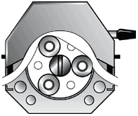 在滾珠之間形成一個流體“枕”其形狀大小與泵管內徑及轉子的幾何形狀有關。流速則取決于該枕形流體的速度與尺寸大小的乘積。此枕形可保持基本不變,除非流體粘度太大。